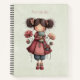 Spiral notebook with a cute retro image featuring a whimsical girl with rosy cheeks and flowers in her hair. Carrying a green frog doll.