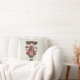 Pillow with a cute retro image featuring a whimsical girl with rosy cheeks and flowers in her hair. Carrying a green frog doll.