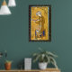 Reproduction of a fine art piece entitled "Girl With a Scroll" by Reza Abbasi. Design featuring a woman sitting on a bench holding a scroll. Painted circa 1600.