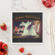 Halloween party napkins with customizable text and a vintage image of girl looking in a mirror to see a Spooky Ghost behind her - a trick from some little Halloween sprites!
