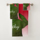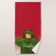 Cute Girl with Green Frog Hoody Drawing Custom Name Bath Towel Set. A cute drawing of a girl wearing a green frog hoody on a red background. Fun design for a girl and a great gift for Christmas or birthday. Add your name.