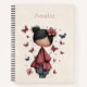 Spiral notebook with an image of a young girl holding a butterfly wand. An adorable unique retro style doll with rosy cheeks. Butterflies flying all around. Sweet and cute.