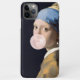 Girl with pearl earing blowing pink bubble gum iPhone case
