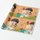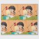 A girl sitting at a desk working with a pile of books. This design looks really effective on this Wrapping Paper