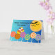 A candy corn couple sits on swirling lollipops and stares at the autumn moon with bats in flight. Halloween card for a girlfriend. Inside message: Candy corn kisses and Halloween wishes for the best girlfriend ever. Art, image, and verse copyright © Shoaff Ballanger Studios, 2024.