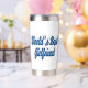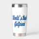 Tumbler with World's best girlfriend in 3D sea blue text.