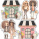 An Adorable Kids Vinyl Cartoon Sticker Of Two Different House's And Girlfriends Stickers