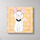 Cute white cat with black collar and pink/white polka dot bow on fancy pink and gold background