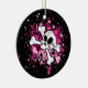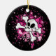 Girlie skull and crossbones with bow is surrounded by an explosion of pink with hearts and stars.