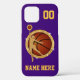 Girls Tough Basketball iPhone Cases, Personalized in Any COLORS. For Newest to Older Devices and various Styles. Shown is the iPhone 12 Basketball Case. You, or CALL Designer Linda: 239-949-9090 EST can TRANSFER this Design to your choice of THOUSANDS of other Basketball Phone Cases, iPad, Device Cases, Basketball Gifts for Basketball Lovers and more. CHANGE the Purple Background and Gold Text to Any COLORS or Designer Linda will change it for you.