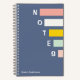 A blue notebook for girls with a colourful text that reads "NOTES" and a custom monogrammed full name.