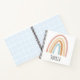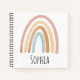This boho girls school notebook features a pink watercolor boho rainbow, a matching rainbow pattern on the back, and space to add a name in simple typography. The perfect modern and whimsical stationery design for any kid or rainbow-loving adult!