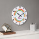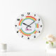 This playful clock features a vibrant rainbow that forms a circular frame for a customizable name, accented by fluffy clouds and golden stars.