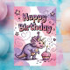 Girls Cute Personalized Dinosaur Birthday Postcard