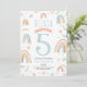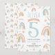 This cute and whimsical kid's birthday invitation design features a pink watercolor boho rainbow, with a matching rainbow and floral pattern on the back. There is space for you to add all the information you need for your child’s rainbow party, including the location and contact number. Perfect for a child's 5th birthday, and possible to edit for any other age!