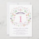 This elegant and pretty first birthday invitation features an illustrated floral wreath with the words "Let's Celebrate" encircling the number 1. The text colour, font, and message can be changed to your liking. The back of the invite features a pink background (that can be swapped to any colour of your choice) with a white quatrefoil pattern. A perfect way to invite guests to celebrate a girl's special birthday.