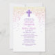 A modern, contemporary first communion design for their big day! The pink and purple confetti and the simple typography give this design a classic, fun vibe.