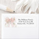 A lovely return address label with feminine styling featuring a pastel pink watercolor bow with pink flowers. A lovely silver cross sits above the bow as a symbol of Christianity. The attractive text template arranges your text in classic style. Easy to personalize with your information, this return address label is part of a coordinated collection to celebrate a girl's first holy communion.
