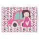 Fun, cheery, cute, girly, whimsical best describe this pretty in pink, white, and blue design girls are sure to love on tote bags, messenger bags, cosmetic bags, key chains, mugs, baby blankets, burp cloths, and so many other items. Features girls with pink dresses, blue fancy circles with hearts, and pink cars.