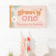 This girl's birthday party banner features a fun 70's style theme featuring the retro text "groovy one". The design is accented with boho colours, cute white daisies.