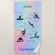 Beautiful gymnastics beach towel loaded with popular words related to girls gymnastics skills and a variety of gymnast silhouettes all over - Personalize with the name of your gymnast!