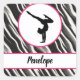 This design is so unique and truly looks like real zebra fur, personalized with the name of your child, features a female silhouette doing a handstand pose that is popular in gymnastics, dance, cheer and even yoga. The background pattern has the look of zebra fur!