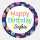 Girls Happy Birthday Blue Owl Pattern Personalized Classic Round Sticker