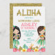 Are you organizing a girl's Hawaiian Luau birthday party and are looking for an invitation? Does your little girl love all things with a little bling? Then this birthday invitation might be a design she will like. It features two cute girls, various tropical watercolor flowers and some watercolor and faux gold tropical leaves on a scanned watercolor background image. The back of the invitation is also a faux gold image. More invitation in this theme are available at the store so please visit. This girl's Hawaiian Luau birthday invitation ready to be personalized.