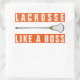 Lacrosse gift stickers, party favours and envelope seals featuring Lacrosse Like a Boss quote and women's lax stick design on an orange background.
