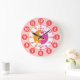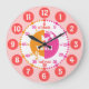 Colourful little girls graphic wall clock colour coded to help assist your child to read a clock. This colourful teaching aid includes minutes and hours and past and to making child's play of telling the time. Clock colour coded in pink, red, orange and white featuring a little white butterfly and can be customised with your name of choice. Currently reads Yanni. Designed exclusively by Sarah Trett. A great addition to a colourful little girl's bedroom who is just learning to read a clock face. Would make a great well done at school present or special birthday / Christmas gift.