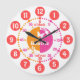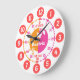 Colourful little girls graphic wall clock colour coded to help assist your child to read a clock. This colourful teaching aid includes minutes and hours and past and to making child's play of telling the time. Clock colour coded in pink, red, orange and white featuring a little white butterfly and can be customised with your name of choice. Currently reads Beatriz. Designed exclusively by Sarah Trett. A great addition to a colourful little girl's bedroom who is just learning to read a clock face. Would make a great well done at school present or special birthday / Christmas gift.