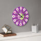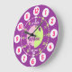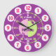 Colourful girls graphic wall clock colour coded to help assist your child to read a clock. This colourful teaching aid includes minutes and hours and past and to making child's play of telling the time. Clock colour coded in purple, pink, yellow green and white, can be customised with the short name of your choice. Currently reads Khloe. Designed exclusively by Sarah Trett. A great addition to a little girl's bedroom who is just learning to read a clock face.