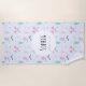 This modern kids beach towel design features a cute pink river axolotl pattern and can be personalized with your child’s name. The quirky gender-neutral pattern also includes flowers, river plants, and waves. The perfect salamander-themed towel for any water lover!