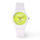 This sporty tennis watch features a tennis ball graphic upon which you can customize the player's monogram in a pretty, girly font - by katz_d_zynes