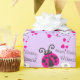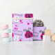 Birthday wrapping paper in a cute purple and pink girls flying ladybug / ladybird and hearts design. Personalize this girlie birthday paper with your own name and age. Currently reads Happy Birthday Hannah 8 today. Uniquely designed by Sarah Trett.
