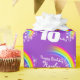 Birthday wrapping paper in a colourful rainbow with stars and purple sky design. Personalize this girls birthday paper with your own name and age 10 to 19. Currently reads Happy Birthday Haylee 10 today. Perfect for wrapping a special tenth birthday gift. Uniquely designed by Sarah Trett.
