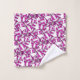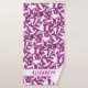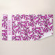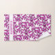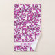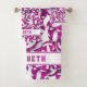 This unique volleyball themed towel set features a random pattern of varied size fuchsia and white stylized volleyballs turned every which way on a customizable white background - personalize the bath towel & hand towel with her name - by katz_d_zynes