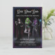 Préparez-vous à aller à la piste de danse avec votre gang de ghoul ! Cette invitation d'Halloween amusante et vibrante présente trois amis monstres élégants (vampiress, she-devil, and sorch) dansant dans une pose festive. Parfait pour un Monster Mash, Costumes et Cocktails haute énergie, ou une fête d'Halloween adulte. Ce design sans frontières est entièrement personnalisable pour votre événement !