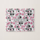 This cute soccer themed jigsaw puzzle features a seemingly endless pattern of soccer balls in varying sizes and at varying depths, turned every which way - some of the soccer balls' typically black panels have been recolored pink - customize with soccer player's name - by katz_d_zynes