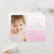 Adorable pink ombre watercolor background with pretty pink flowers baby girl photo first birthday party invitation. This pretty pink and teal blue first birthday party invitation is easily customized with your photo and event details.