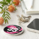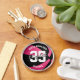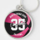 This personalized basketball keychain for girls features a simple basketball graphic that has been recolored pink and black with overlying gray and white text - easily customize this keychain with the player's name in a signature (or autograph) style font atop the player's jersey number (in a varsity letter style font) at the center of the keychain; the school's name and team mascot name encircle the name and jersey number, also in a varsity letter style font - by katz_d_zynes