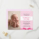 Girls pink simple elegant baptism invitation postcard