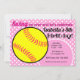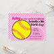 Your birthday will be a home run with this adorable softball birthday invite! Features giant yellow and pink softball, with pink and white polka dot background.