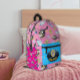Prepare your little girl for back to school with this modern and adorable watercolor police print backpack. It features a background of different hues of pink and blue, accompanied by stars, clouds, police badges, helicopters, and a K-9 dog pilot. You can personalize it with your child's favourite City Police Department or their name and lucky number on the police officer hat. This backpack is suitable for school, camps, sleepovers, visits to relatives, and travel, and also makes a great birthday gift.