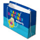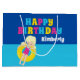 Custom kids swimming pool Happy Birthday gift bag for a blonde girl on the swim team during the summer. Features a bright, fun pop of colours and a cool swimming girl in an inner tube. Customize for a special children's gift.