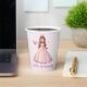 Paper cups for girls featuring a cute princess design with space to personalize a name. Great for serving drinks and adding a fun touch to a princess-themed birthday party.