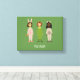 A cute illustration of three girls dressed in pyjama sleepwear dress up costumes against a customisable green gender neutral background colour. This cartoon illustration is girly and would be the perfect wall design for a young or tween girl. The name is fully customisable.