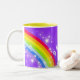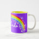 Bright and colourful rainbow "your name" kids mug. Perfect gift for a vibrant child. Mug reads: Melinda or personalise this mug with the name of your choice up to 7 letters. Mug designed exclusively by Sarah Trett.