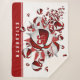 This cool girl's basketball themed Sherpa fleece blanket features an "explosion" of red and white basketballs in varying sizes and grey and red star shapes - the red star has a tiny pattern of white polka dots - customize with player's name and jersey number - the red colour strip at the bottom edge is customizable - katz_d_zynes