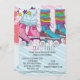 Roller Skating birthday party invitation in fun and funky bright vibrant colours , lines and flowers in the background and a very girly look . with a sketchy illustrative style.